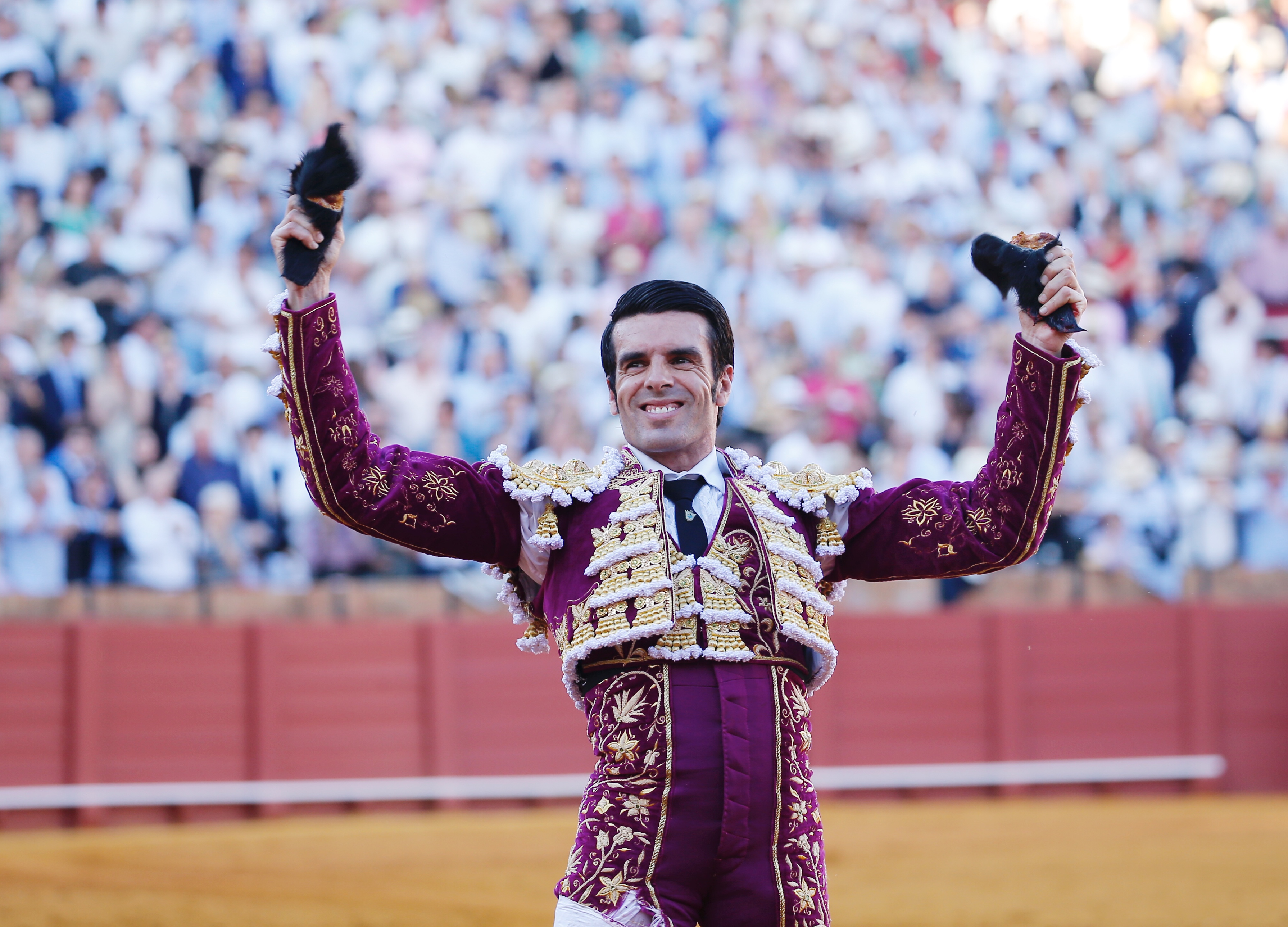 No tenía mucha más fuerza el cuarto, pero le permitió algo más de lucimiento, y Morante pudo dibujar muletazos lentísimos y destellos de torería añeja, chispazos de arte, que provocaron el delirio. Siguió intentándolo, pero el toro no dio para más. Sonrió Morante abiertamente cuando tomó la oreja, que la dejó en el estribo, y comenzó una apoteósica vuelta al ruedo que apareció una eternidad.