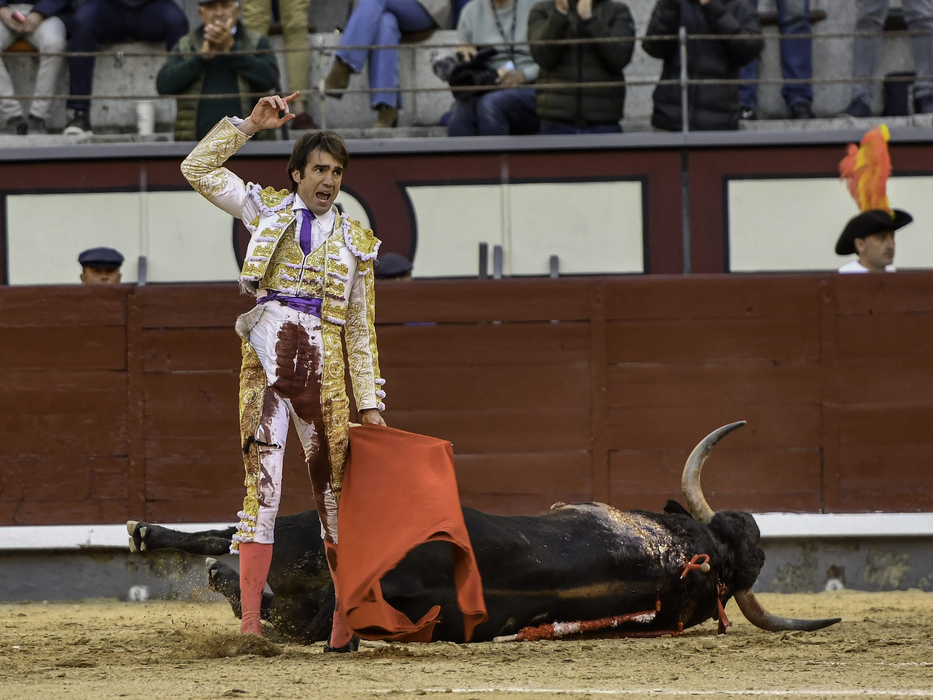 Una faena de «¡ay!», Que no de «¡olé!», Que rubricó con una soberbia strocada que le való una oreja. Con gran despaciosidad y recto como una vela, De Torres ejecutó la suerte del volapié con una limpieza inusitada y dejó el acero en todo el hoyo de las agujas. Los tendidos, puestos en pie, contemplan la escena que da sentido a esta fiesta: la fiera, herida de muerte, se tambaleó colgante unos segundos, antes de derrumbarse ante el hombre victorioso y heroico.
